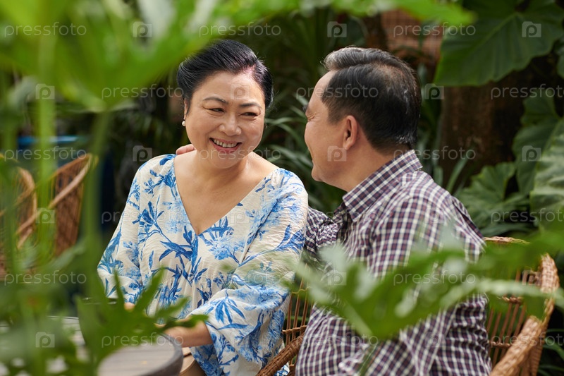 Старшая пара сидит на скамейке в парке