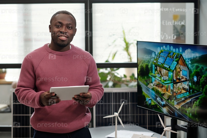 Молодой улыбающийся бизнесмен с планшетом
