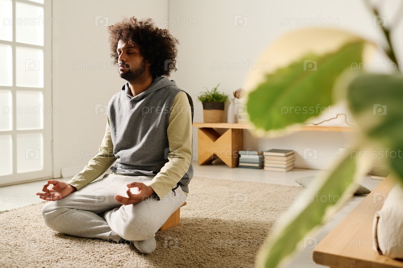 Спокойный парень медитирует на полу