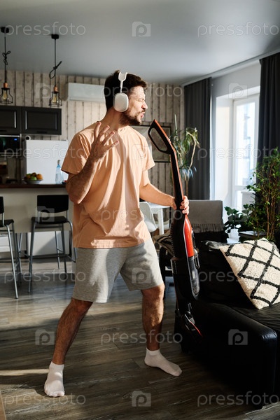 Парень поет в электрическом пылесосе