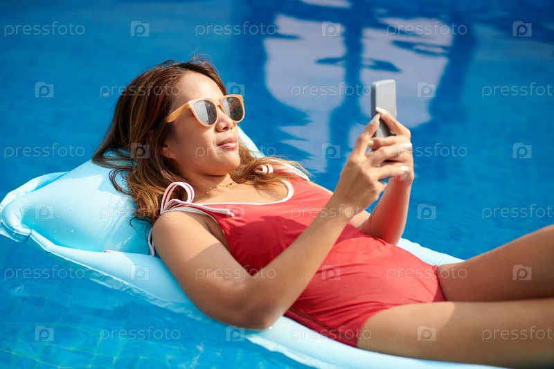 Женщина, расслабляющаяся на надувных предметах