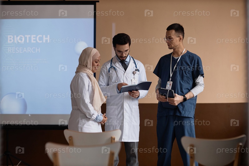 Медицинские специалисты обсуждают презентационный материал