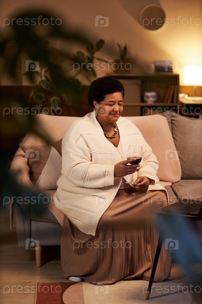 Черная женщина во время расслабляющего домашнего вечера Senior