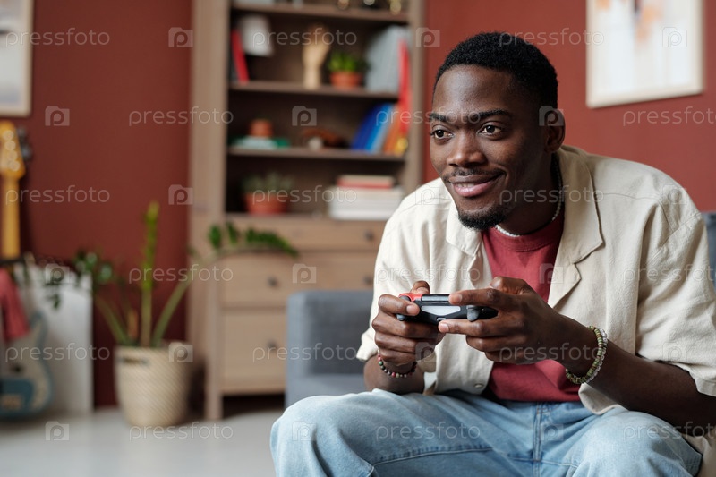 Счастливый парень играет в видеоигры дома