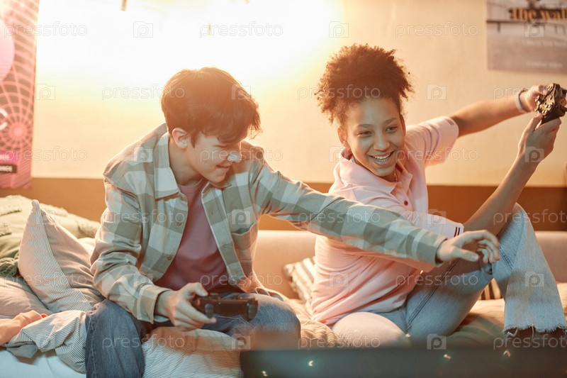 Два молодых друга играют в видеоигры вместе