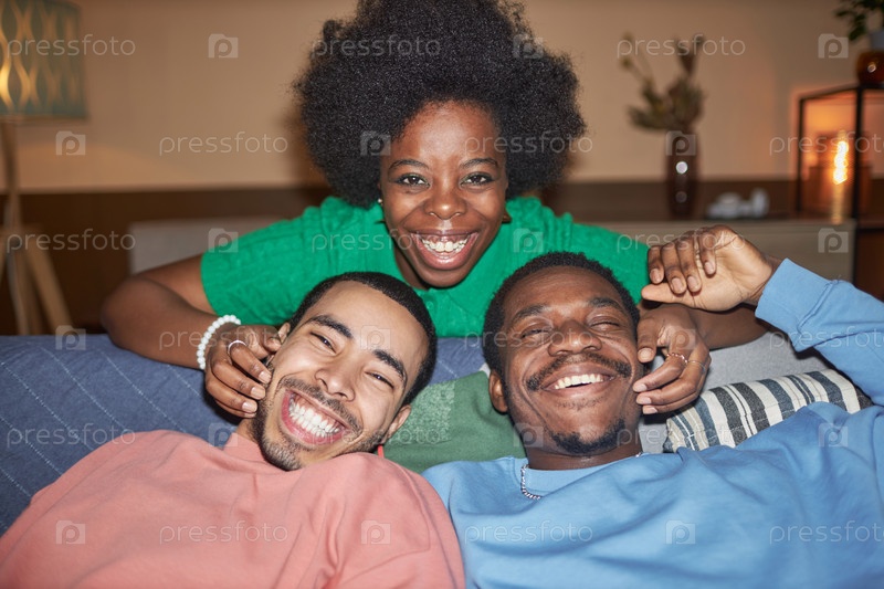 Трое друзей улыбаются на камеру с помощью флэша