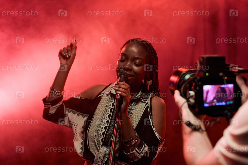 Оператор снимает чернокожую женщину в музыкальном видео