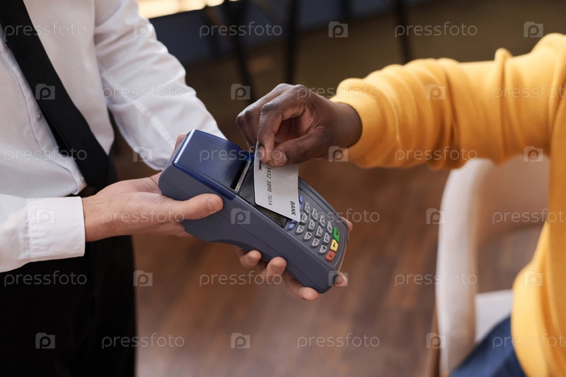 Непризнанный чернокожий мужчина платит за еду в ресторане