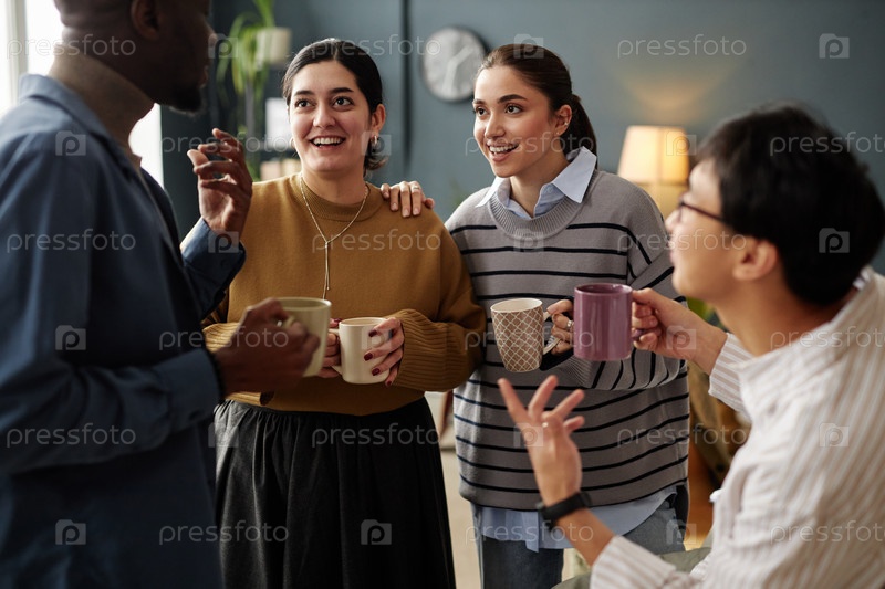 Разнообразная группа коллег в чате