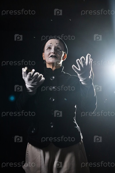 Мим играет драму на сцене