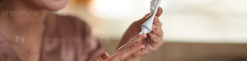 Женщина сжимает увлажняющий крем из трубы