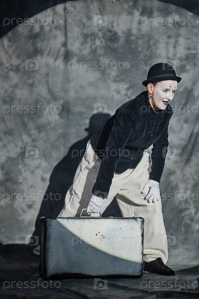 Выступление мима с чемоданом на сцене