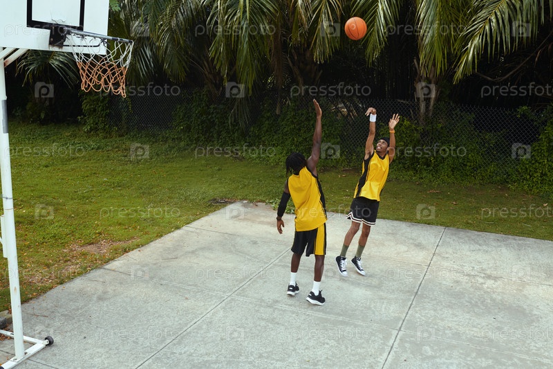 Черные мужчины играют в стритбол