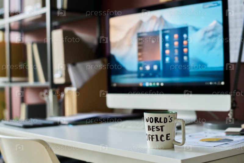 Чайник на рабочем месте белого воротничка работника