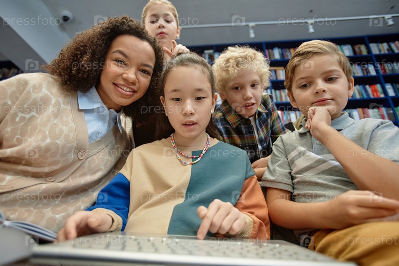 POV различных детей, смотрящих на компьютерный экран