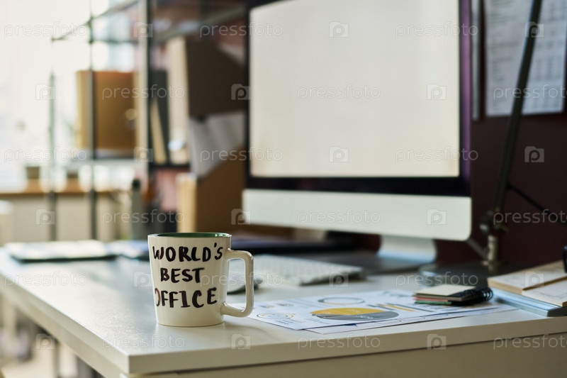 Чашка на рабочем месте брокера в офисе