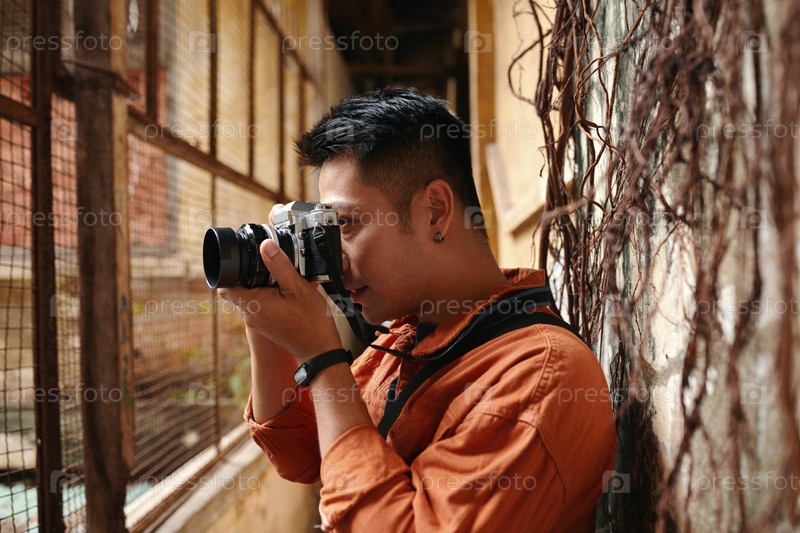 Фотографирующий старика из двора