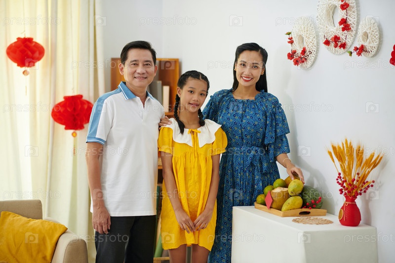 Родители и дочь готовятся к Тет