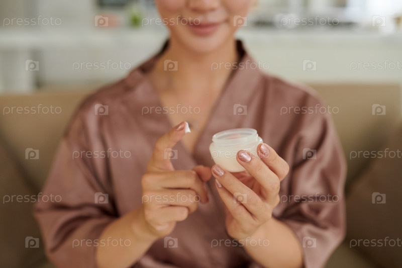 Применение богатого крема для лица женщина