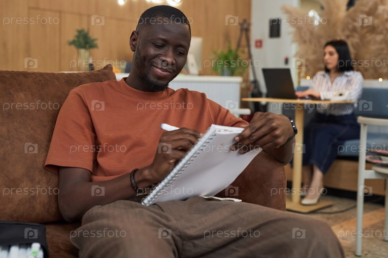 Черный молодой человек рисует