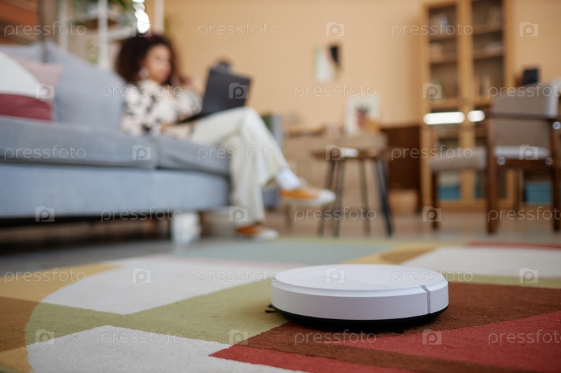 Ближайшее сближение белого роботового пылесоса
