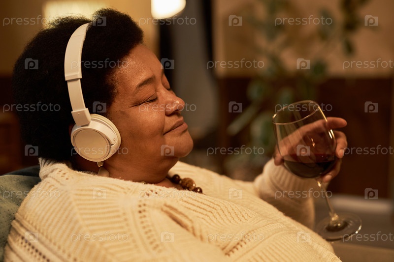 Черная женщина наслаждается успокаивающей музыкой