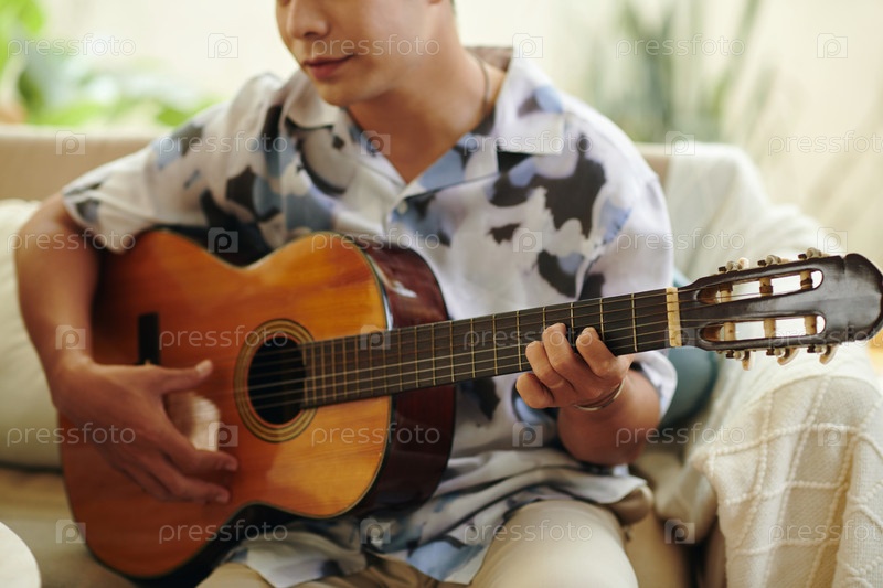 Творческий мужчина, играющий на гитаре
