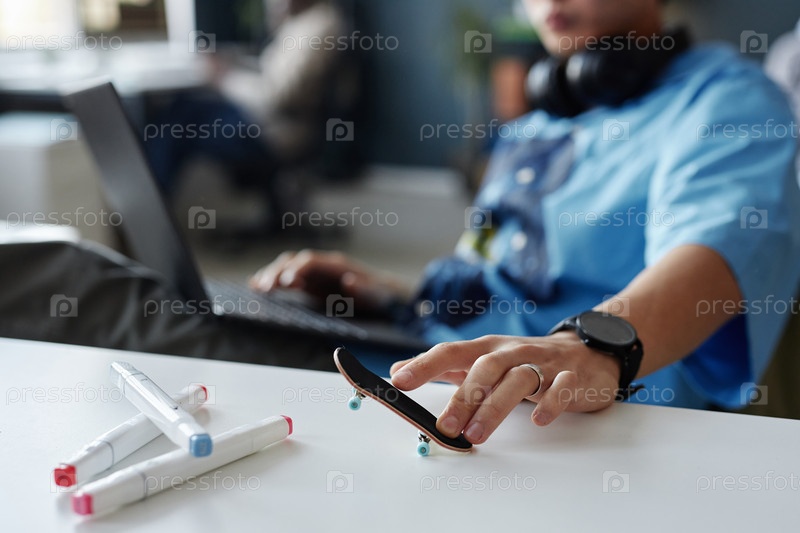 Мужчина играет с доской на рабочем месте