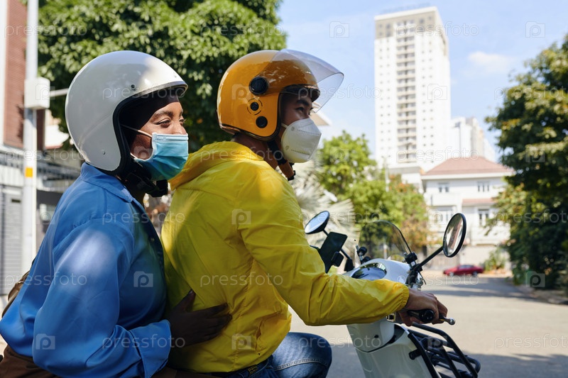 Женщина, пользующаяся службой мотоциклетного такси