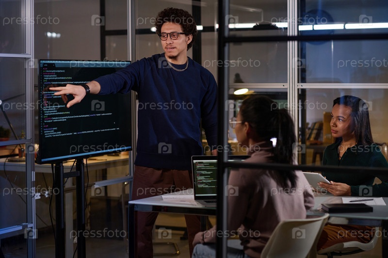 Мультиэтнические программисты работают вечером