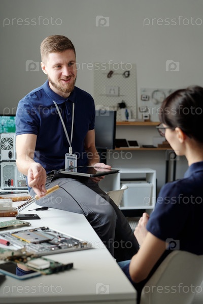 Использование планшета и разговор с коллегой