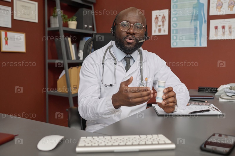Врач назначает лекарства своему пациенту во время видеозвонка