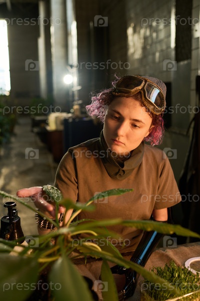 Молодая женщина с инвалидностью заботится о комнатном растении