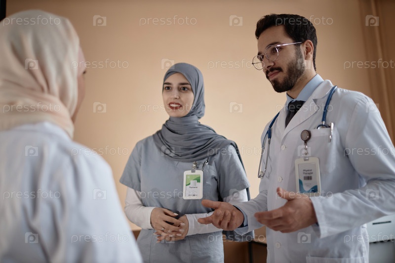 Врачи разговаривают с коллегами по работе