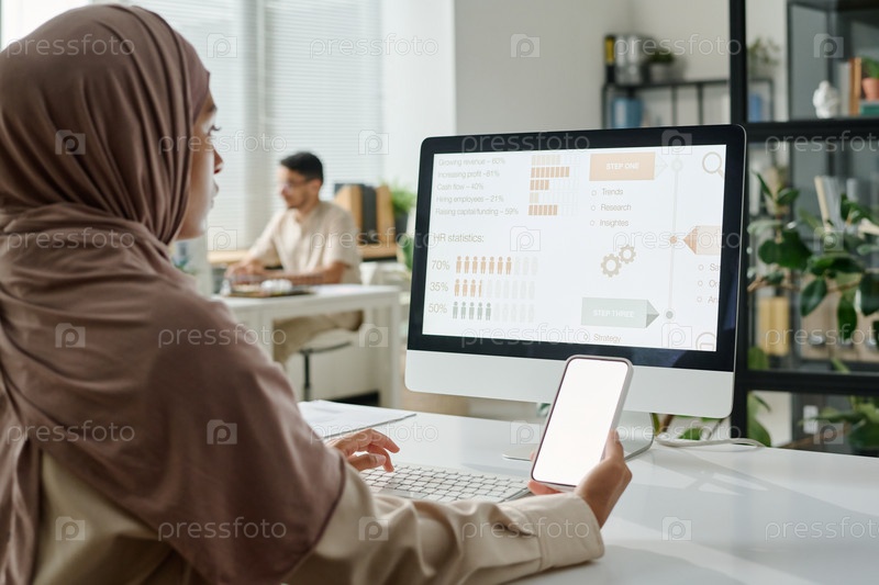 Мусульманская бизнесвумен, работающая в офисе
