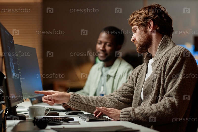 Коллеги просматривают данные в офисе,
