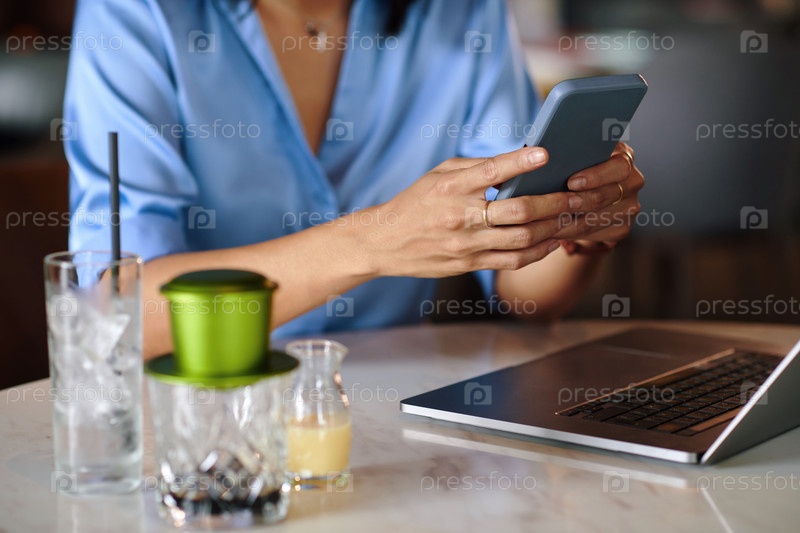 Деловая женщина отвечает на текстовые сообщения от коллег