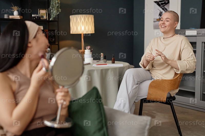 Две девушки, беседующие во время выполнения рутины красоты