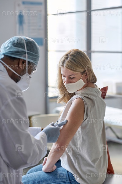 Женщина, получающая инъекцию вакцины в клинике