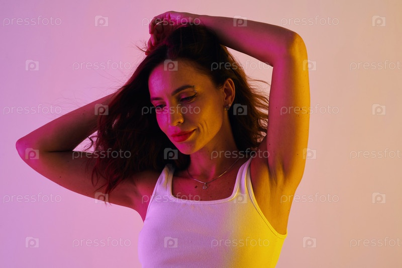 Брюнетка танцует в неоновом свете