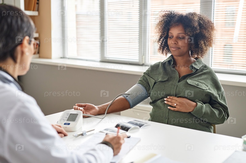 Врач измеряет кровяное давление будущих матерей