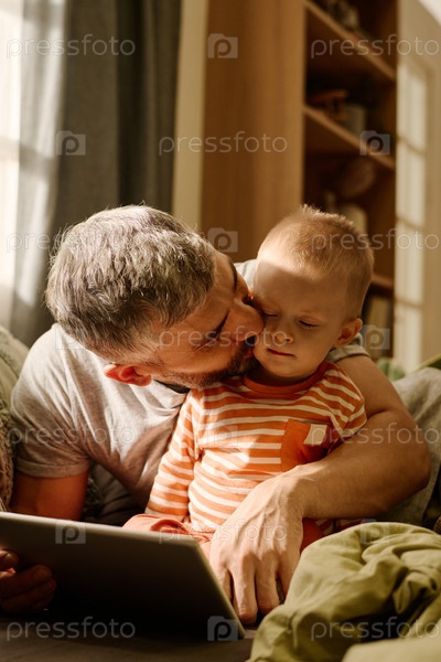 Поцеловать ребенка на щеку и обнять его