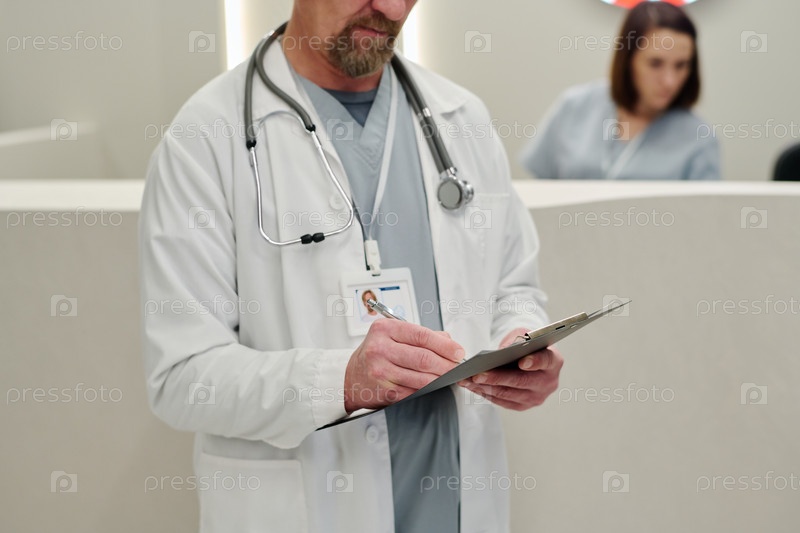 Мужчина-клиницист делает медицинские заметки