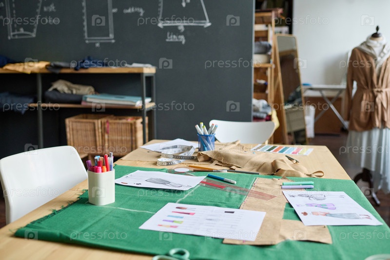 Ателье с швейными узорами на столе