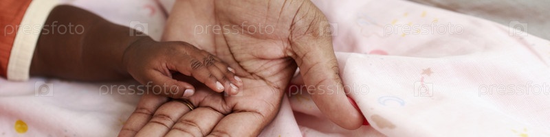 Веб-баннер с руками новорожденного и матери