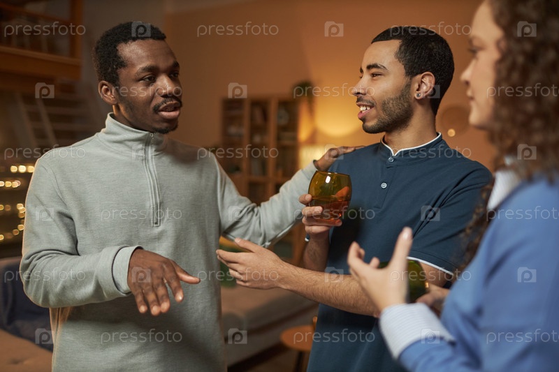 Друзья, эмоционально общающиеся на домашней вечеринке