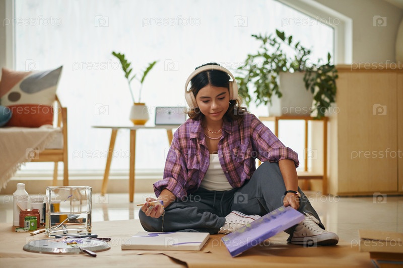 Девушка, рисующая картины в спальне