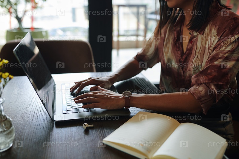 Деловая женщина, работающая в кафе