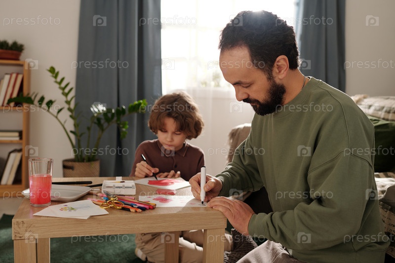 Мужчина рисует с помощью выделителя на бумаге
