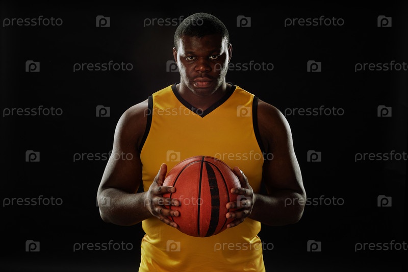 Баскетбольный игрок, держащий мяч мышечно